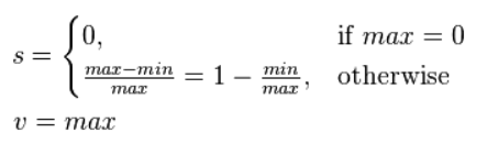 对于RGB2HSV,色相H的定义相同,其他分量S, V不同